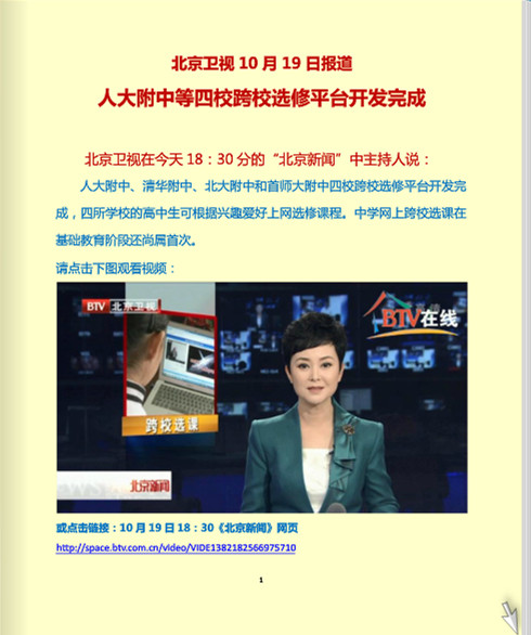 北京卫视:人大附中等四校跨校选修平台开发完成